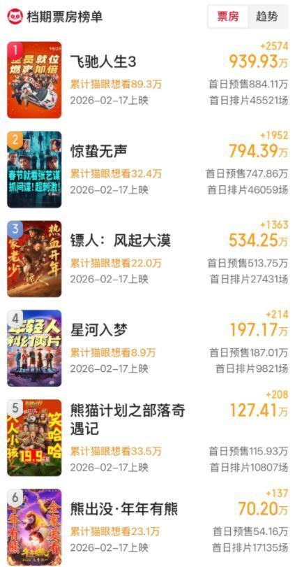 本年春节档共有6部电影与咱们碰头,当开启预售之后,票房快速冲突1000万,《疾驰东谈主生3》《惊蛰无声》《镖东谈主:风起大漠》暂列前三,如若不出未必,本年的票房冠军,笃信会在这三部剧中出生。