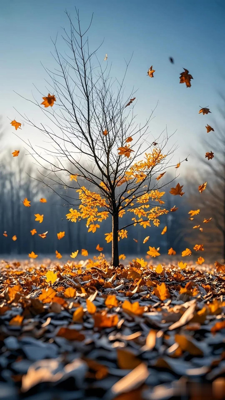 #诊疗系地方图 #冬 #好意思景 #四季循环季节轮转,叶偷偷地从树上飘落!仿佛一派片陨落的音符在似水流年里默读浅唱,萧瑟了些许旺盛逝去了些许东说念主事,谁又在倾听一叶知秋的灿艳!