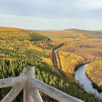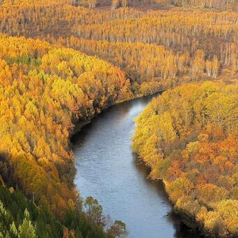 在塔上就不错看到九曲十八弯咯,夕阳本领白桦林。