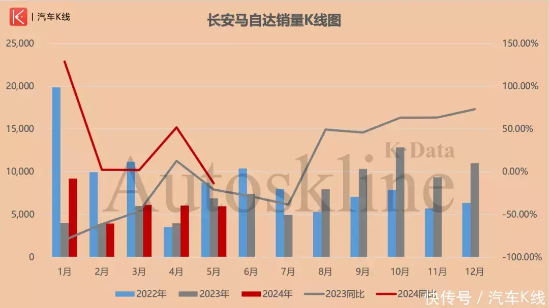 与“其他”板块酿成昭着对比的,是长安汽车合座占比最低、仅为2.88%的长安马自达。产销快报流露,长安马自达5月销售5963辆,同环比分辨下落13.6%和1.45%。