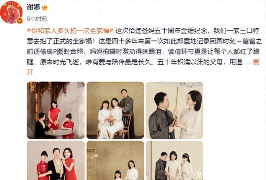 9月6日,谢娜在酬酢平台初度晒出一组温馨全家福,挂念父母成婚五十周年金婚!她动情写谈:“这是四十多年来,咱们第一次如斯驻扎地拍全家福。”拍摄现场,姆妈爽直落泪,爸爸更曾悄悄P图守望合影——原本光鲜亮丽的综艺一姐,背后也藏着一段柔嫩又缺憾的亲情故事……