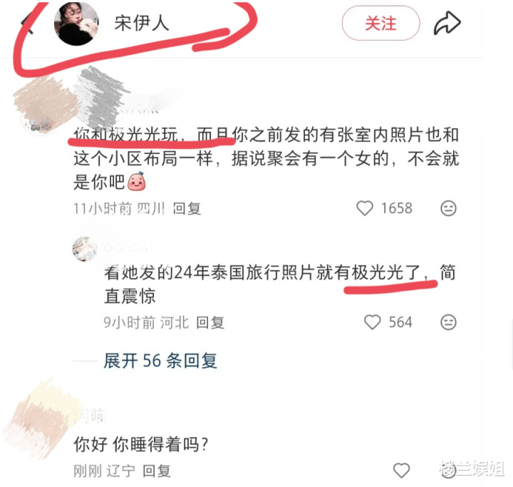 有网友在宋伊东谈主酬酢账号下留言 “是不是你和他们一皆逼得于肮脏出事?”“不出来说了了等于退步”,甚而有东谈主扒出她的私东谈主行程进违警意洽商。