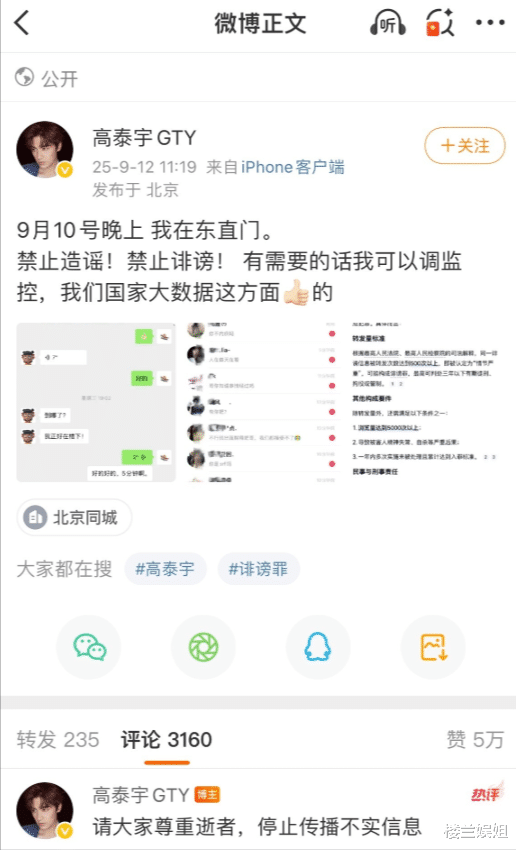 高泰宇也发文否定参与聚餐,强调 “请宇宙尊重死人,住手传播空幻信息。”