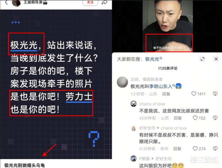 导演王澔桐不同于其他发声者,他胜利喊话极光光,让对方“站出来言语!”
