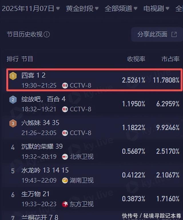 但都市题材却弥远莫得出现一部,将口碑与热度双丰充的狠作。 不过别躁急,央妈泉源了。 《四喜》上星央视八套,鹅厂同步播出,才播3集就拿下宇宙收视率第一的好收成,收视率峰值更是直爽破3.1,看来值得不雅众熬夜狂追的都市剧终于来了。