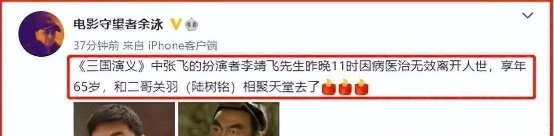 时光流逝,岁月如梭,转倏得,1994年播出的央视版《三国小说》也曾夙昔了28年。追想当年,这部剧不仅走进了千门万户,也成为了普遍东谈主心中罕见的回忆。最近,跟着陆树铭因病活着,剧迷们无不热爱“世间再无关二爷”。而在2022年11月24日晚上11时,“三弟”李靖飞也因病抢救无效离世,享年65岁。