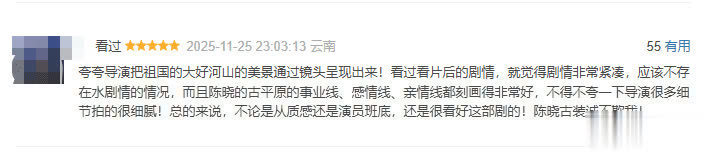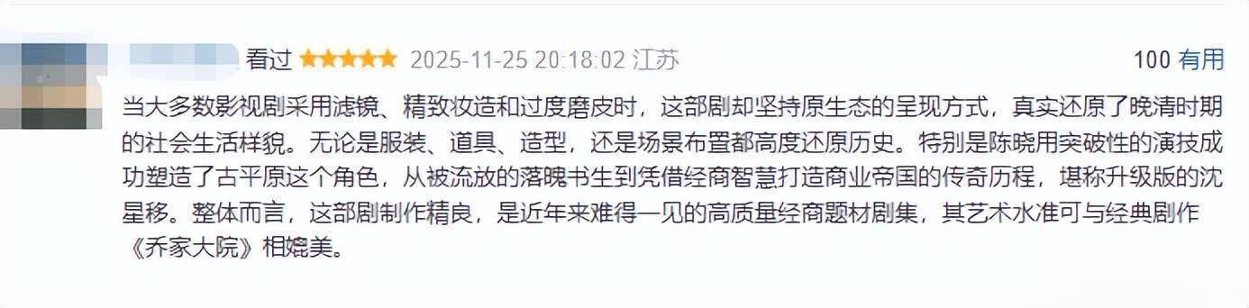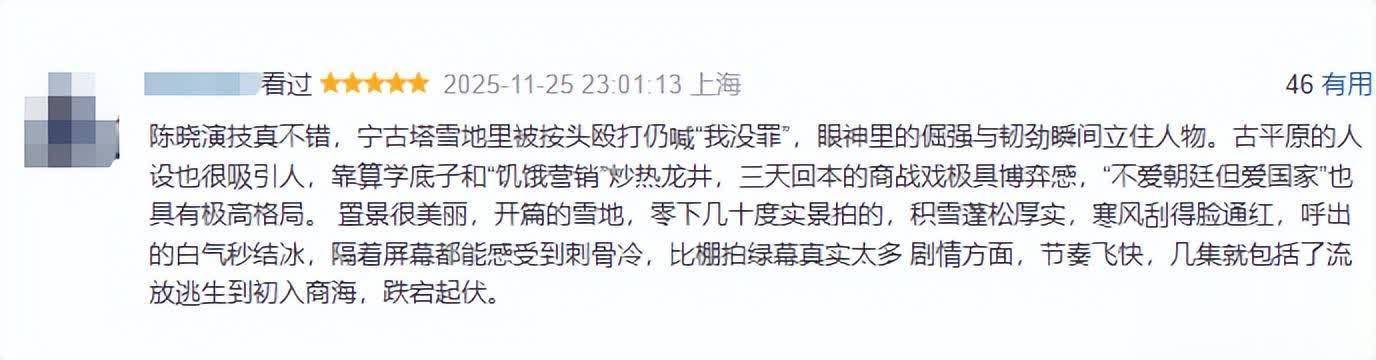 不雅众纷繁夸赞这部剧的镜头话语、服化说念、台词、实景拍摄和剧情等。