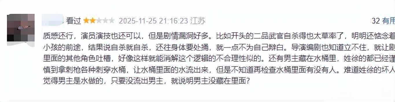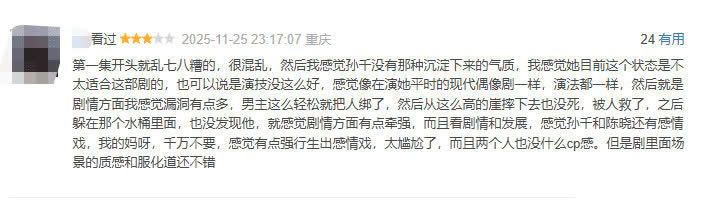 不外,也有不雅众指出剧情有劣势,存在槽点,演员演技差等。