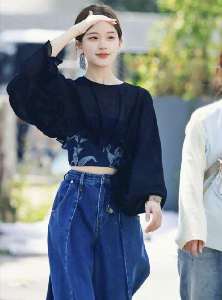 赵露念念在《许我把稳》里的牛仔裤穿搭简直好新潮,谁能料到牛仔裤还能这样搭!新登科上衣+阔腿牛仔,几乎把牛仔裤穿出了新潮啊!