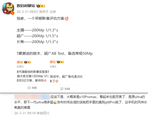 【CNMO科技音信】3月31日,数码博主“数码谈天站”曝光了一款旗舰手机的早期影像评估决议。爆料自大,这款新机的主摄、长焦以及超广角镜头均搭载三款2亿像素传感器竞猜大厅,尺寸诀别为约1/1.3英寸、约1/1.3英寸和约1/1.5英寸。据网友揣测,这款新机有可能是OPPO Find X10 Pro Max。