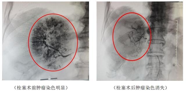 术后患者生命体征沉稳,腹痛症状彰着缓解。复查CT显露,肿瘤出血已有余住手,肿瘤染色磨灭。