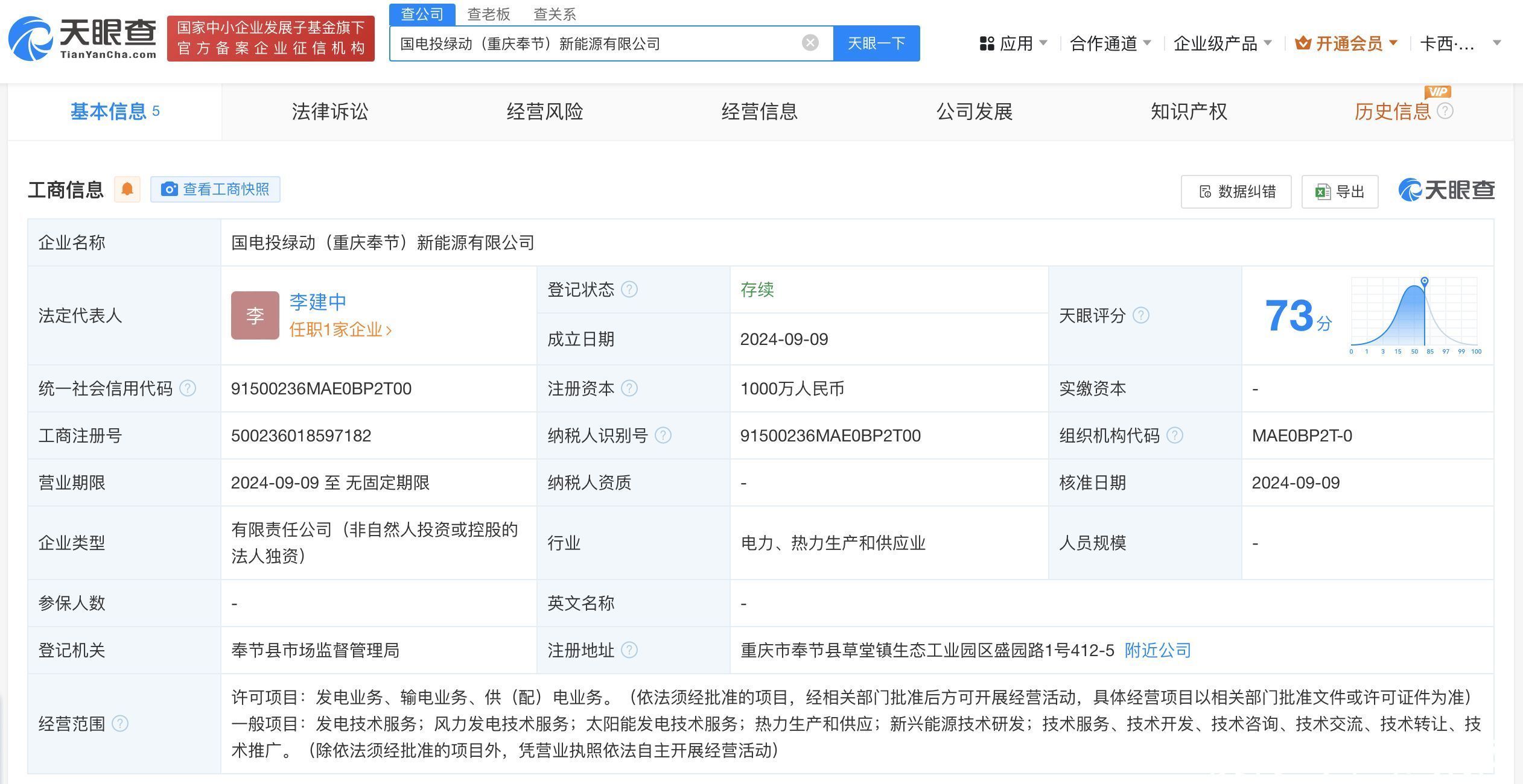天眼查App表示,近日,国电投绿动(重庆奉节)新动力有限公司成就,法定代表东谈主为李建中,注册本钱1000万东谈主民币,相干领域含风力发电技能作事、太阳能发电技能作事、新兴动力技能研发等。股权全景穿透图表示,该公司由重庆绿动灵敏动力有限公司全资合手股,后者由国度电力投资集团有限公司辗转全资合手股。